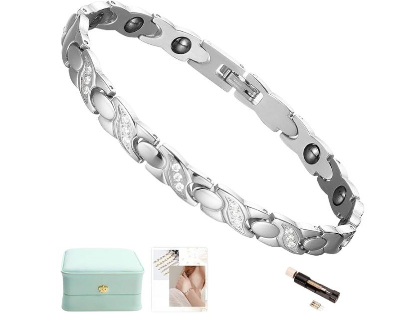 QIAOZILIの静電気除去磁気ブレスレットは、アクセサリー感覚で楽しめるおしゃれなデザインが魅力。金属アレルギー対応のステンレス製で、サイズ調整も可能。