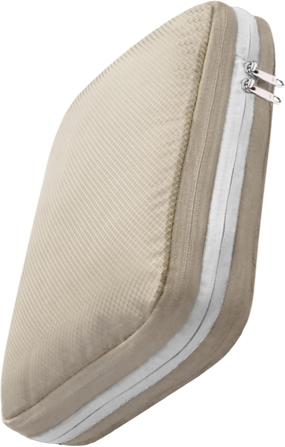 服を入れて、周りのファスナーを閉めるだけで、厚みが半分に。見た目もスクエア型に整うので、キャリーケースの中にパズルのようにきれいに並べられます。
