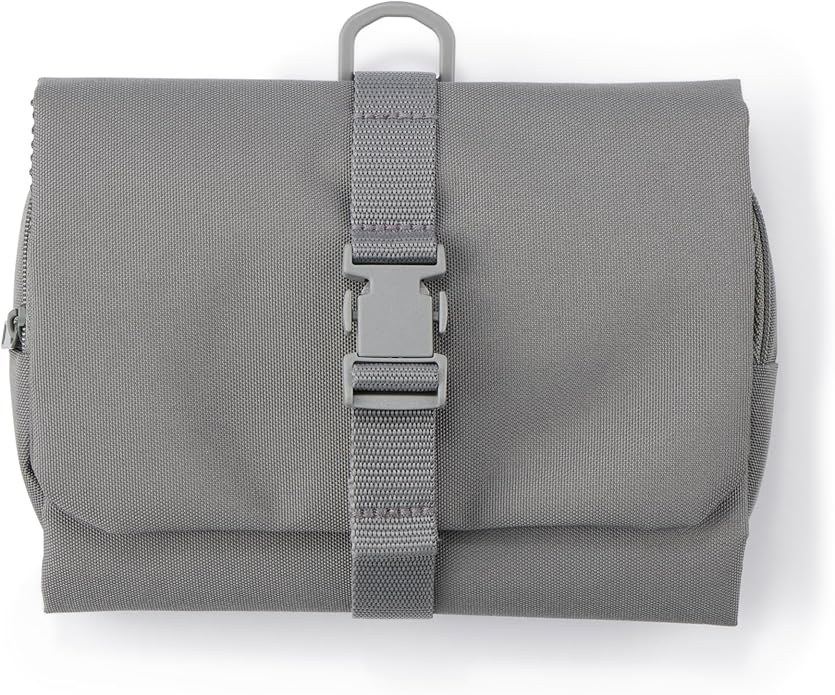 無印良品のポリエステル吊るせるケース着脱ポーチ付なら、スキンケアやメイク道具をまとめて収納し、ホテルのタオルバーに吊るすだけで自分専用ドレッサーが完成します。